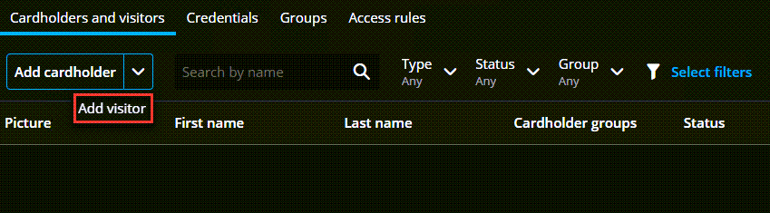- Wählen Sie auf der Seite Karteninhaber und Besucher die Option Besucher hinzufügen aus der Liste aus.